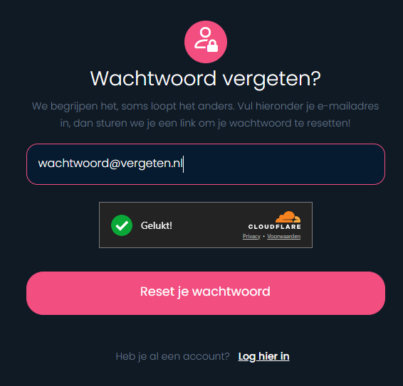 Na het invullen van je e-mailadres en het klikken op "reset wachtwoord" ontvang je een e-mail. In deze e-mail staat een link om je wachtwoord te wijzigen. Volg de instructies. Als het wijzigen is gelukt, kun je weer inloggen.